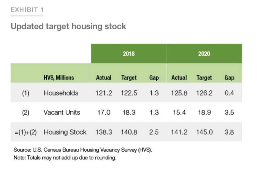 "As of the fourth quarter of 2020, the U.S. had a housing supply deficit of 3.8 million units. These 3.8 million units are needed not only to meet the demand from the growing number of households but also to maintain a target vacancy rate of 13%. Between 2018 and 2020, the housing stock deficit increased by approximately 52%."