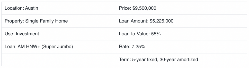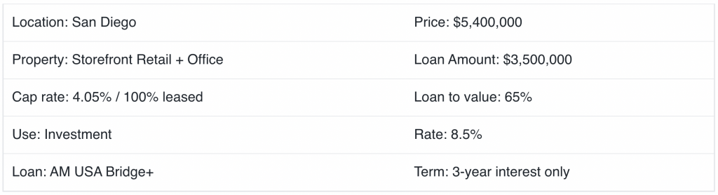 - Client was offered a bank loan at 5.75% but given that it is cash-flow based he would not be able to cover the 1.25x cash flow coverage typically required and would be able to get around 40% LTV. Our knowledge was valuable. We knew that California is a tough market as it is with very low CAP rates but the added increase in interest rates is making it even harder to achieve higher loan amounts.