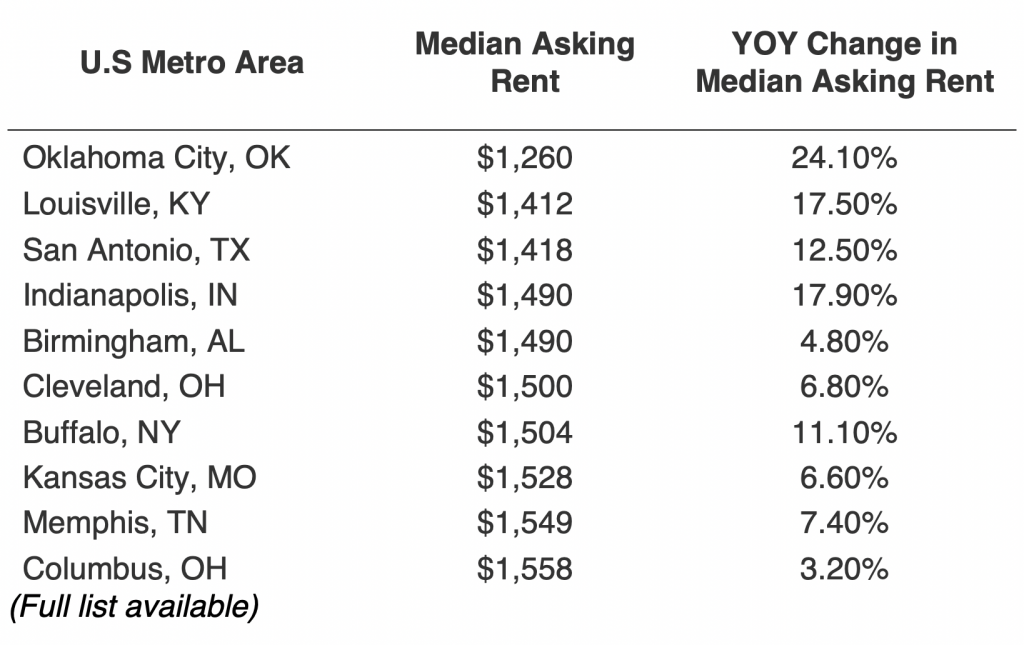 In some cities like Oklahoma City and Pittsburgh, rents rose by more than 20% year-on-year (not a typo). More below.