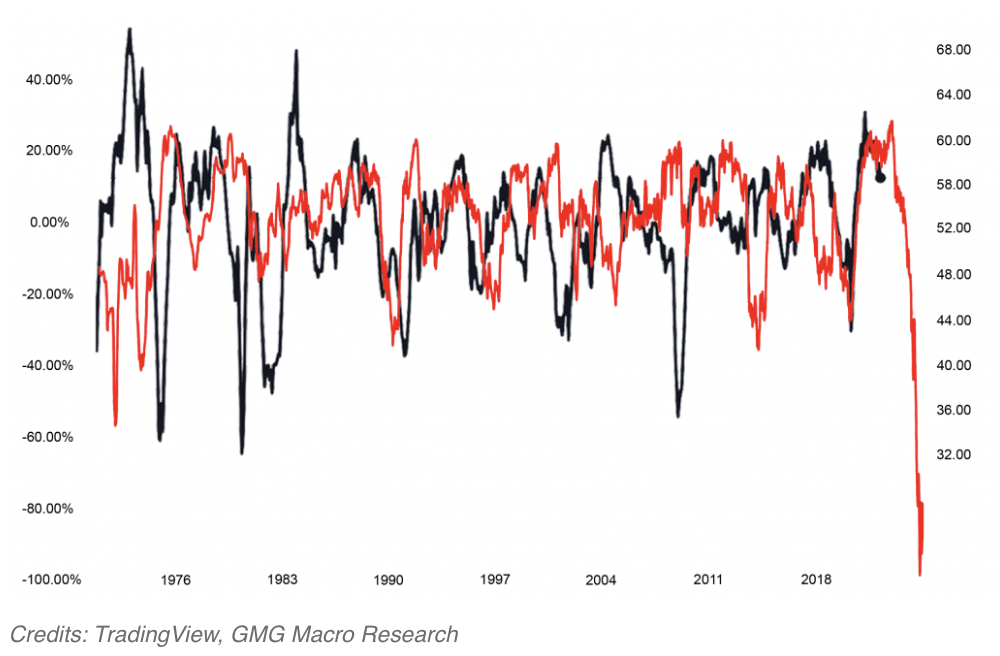 ISM Manufacturing Index - US 30-Year Mortgage, YoY%, 18-Month Lead Inverse"